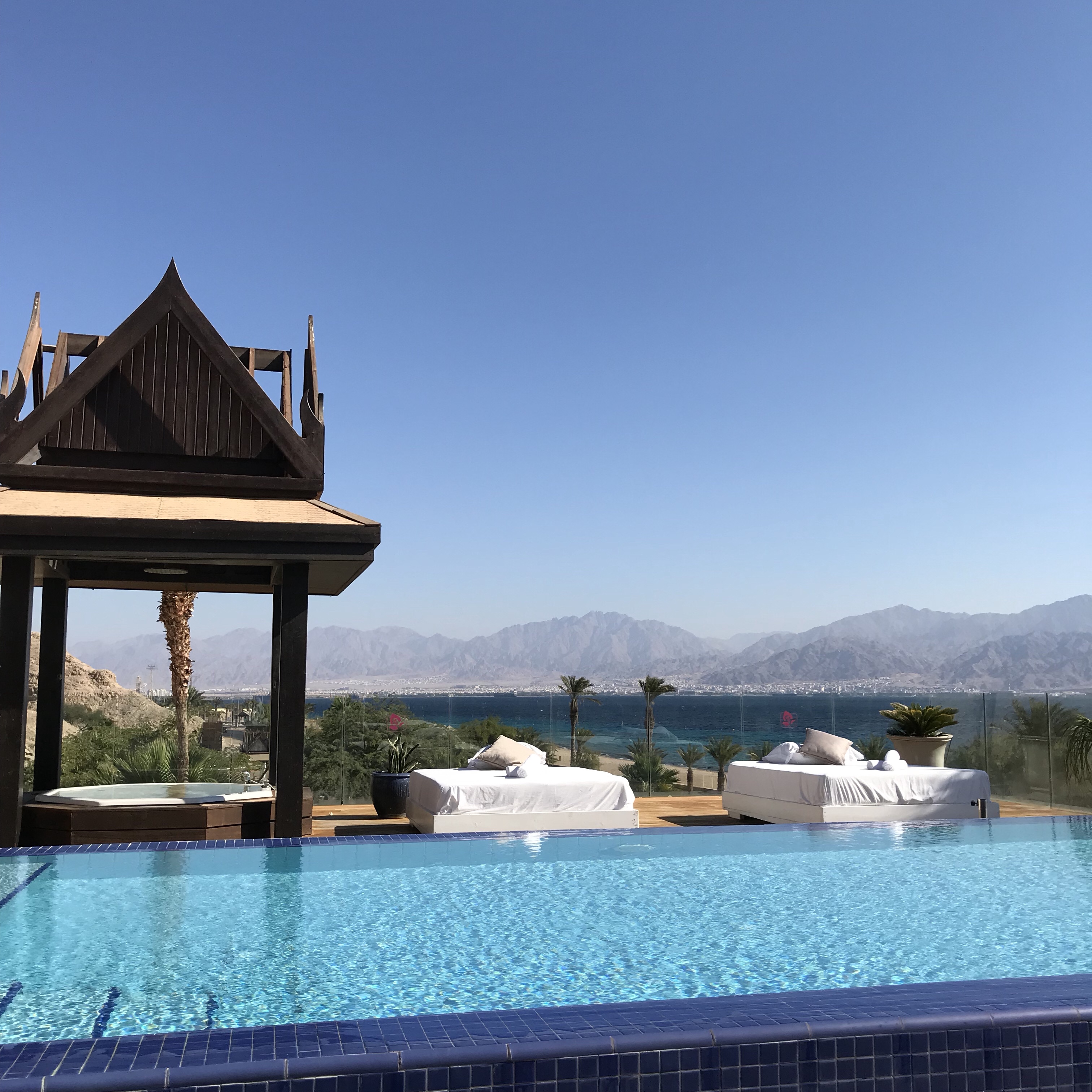 Koh Somui Villa at the Orchid Hotel in Eilat. Got a chance to go to the Dolphin Reef and swim with the dolphins and float in the salt pools. I went snorkeling at 9am at Snuba beach and was able to spend some time with this amazing octopus. I witnessed it change colors and it was one of the most amazing trippiest sh#t I ever seen!